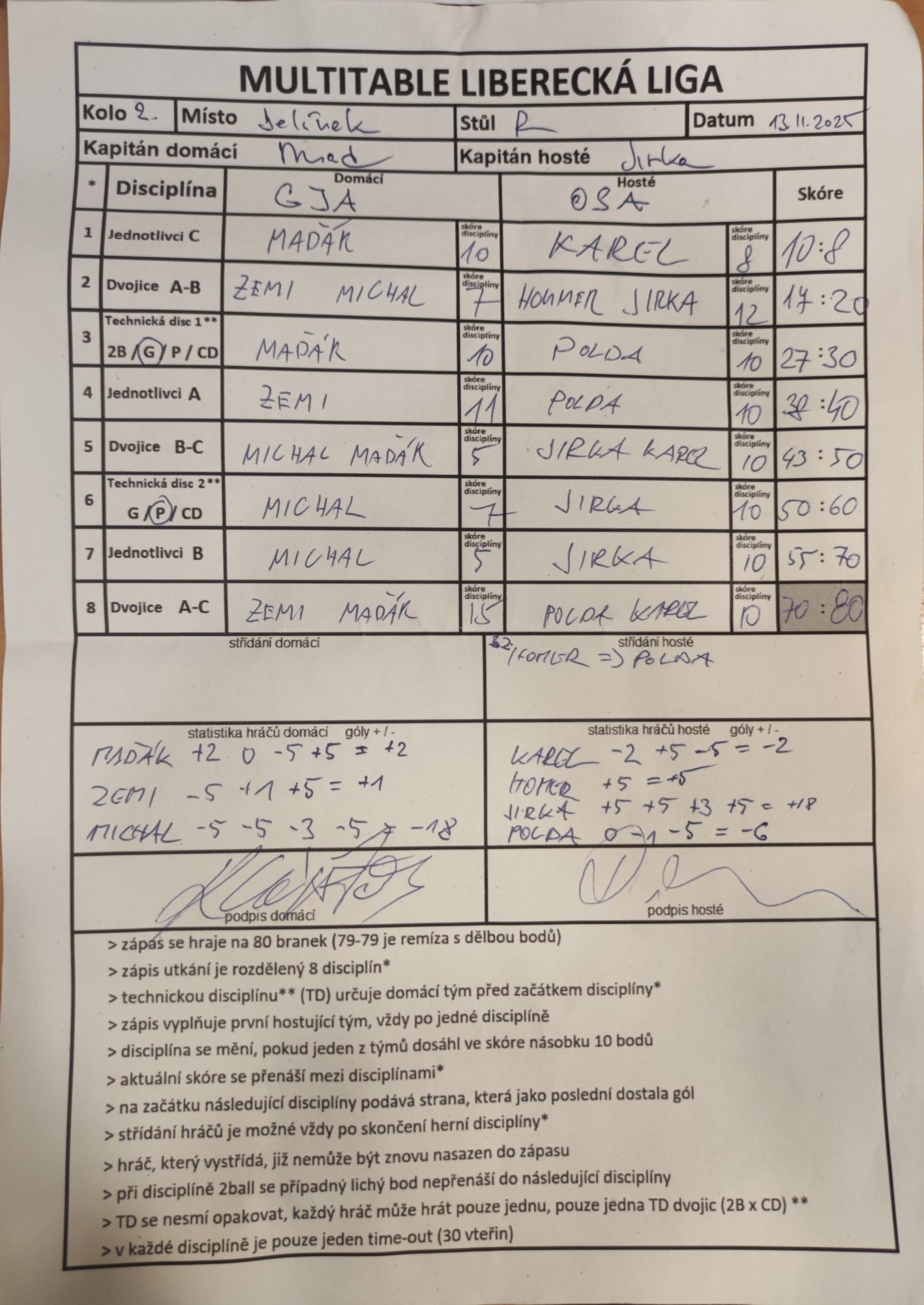 | 20.10. | Garage Masters | Golden Jelínek B | 80:58 | |